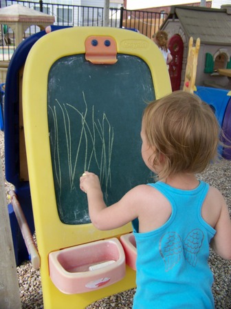 Today my daycare had the pleasure of hosting a young lady who is working on her CDA (child development associate). She needed a place to come interact with the children and be observed by an experienced early childhood teacher. She brought with her piles of paperwork to be completed by me and a fresh sense of excitement and joy that only comes from new teachers. The children loved her, as did I. It's always such a nice break for them to have someone else come in for a while; I'm sure I can be boring to them sometimes. She let them climb all over her, play with her earrings, and chased them all over the backyard. She's going to do well. She has that "teacher voice" that carries well and commands attention. But she's also receptive to the children and reads them well. I have no doubt her program will be successful. It was also nice for me, to have another grown-up to talk to for a couple of hours.