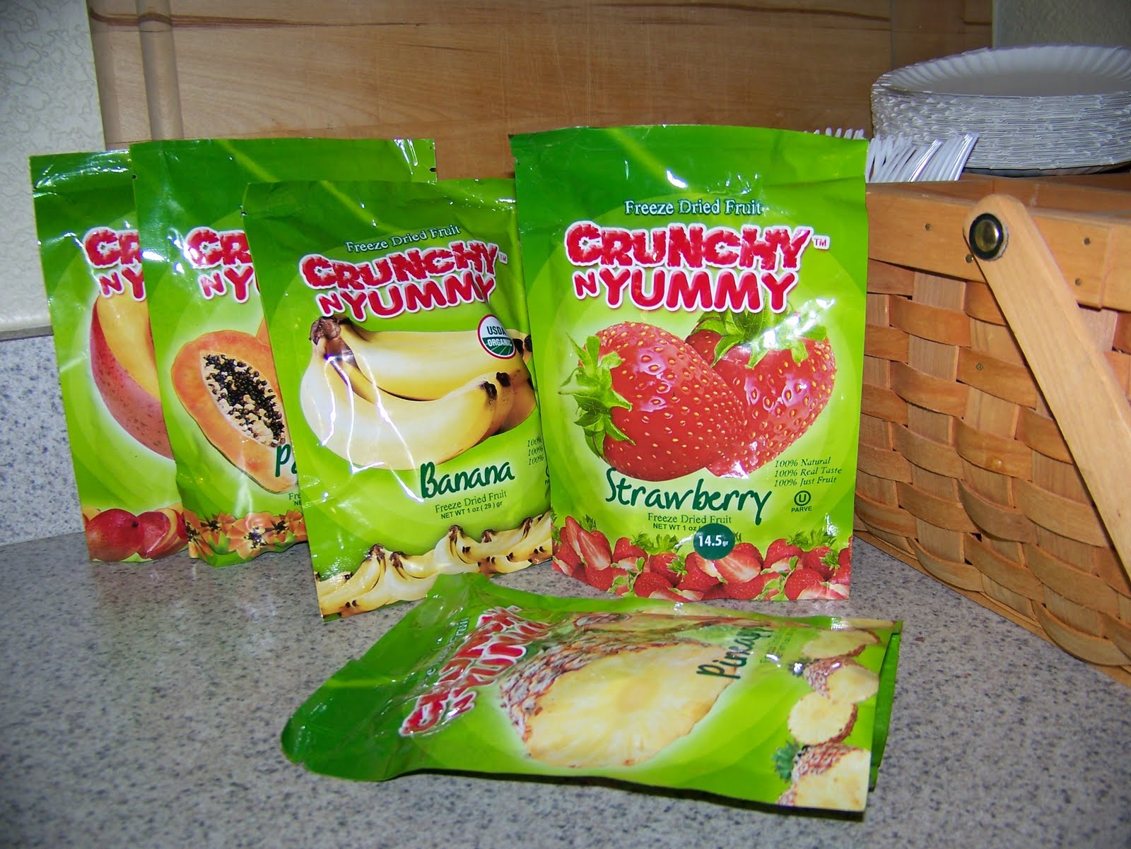 A big thank you to Crunchy N Yummy, who sent me a box of five of their freeze-dried fruit snacks to try! I got the daycare kids all excited, talking up the brand new, crunchy, yummy snacks, hoping they would be more receptive.