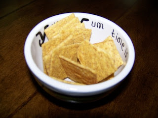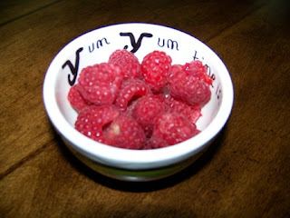 For example, today's lunch consists of a hard-boiled egg, a bunch of red raspberries and a handful of wheat crackers. While I was preparing my lunch today, I remembered I just received a Yum Yum Bowl from Yum Yum Dishes. I put each of my portions into the Yum Yum Bowl to see if what I had chosen was what I would have measured into the bowl and sure enough, it was a perfect fit each time!