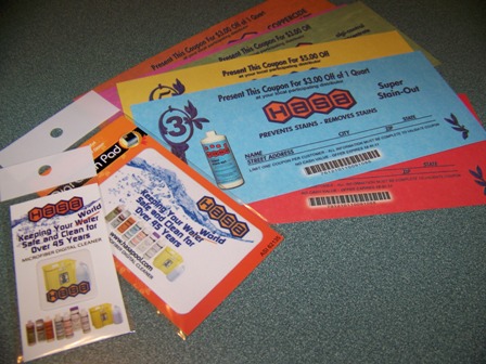 Also, I received a weekly prize from the Hasa Racing - Go Moses contest. Look at all these free product coupons I got! My swimming pool will be sparkling!