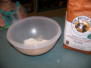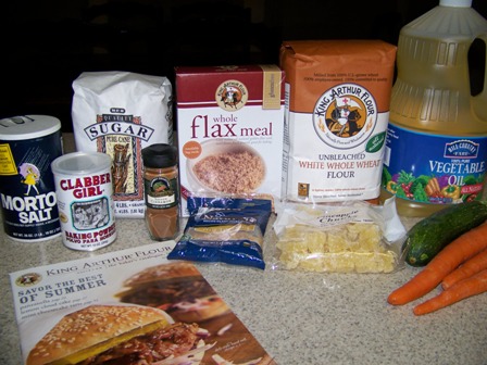 I love doing easy baking projects with my daycare kids. They love to stir, love to pour, and love to make messes. Today we made Zucchini & Carrot Muffins. Yeah, I know they would rather eat chocolate, but these are really good! I sent my dear husband to the store to get all the ingredients I didn't have, which was most of them. King Arthur Flour was so generous to send me a five pound bag of their White Whole Wheat Flour and a box of their brand new Whole Flax Meal.