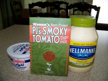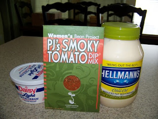 The next day, I selected PJ's Smoky Tomato dip mix and again simply mixed it with sour cream and mayo. I opted for low fat on both, since we're all trying to eat healthier around here. When I opened the package, I could tell by the sharp, spicy smell of this dip mix that I was going to really like this one.
