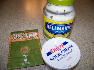 My family voted to try the Garlic and Herb dip first. It took me just a few minutes to dump 8 ounces of sour cream, 8 ounces of mayonnaise, and the dip mix together. It took my family even less time to make it disappear. Normally 16 ounces of dip should be enough for a party, but I have two teenage boys and they're a party all unto themselves.