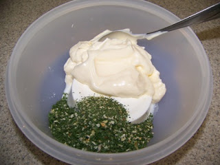 The third mix in this pack is called Dillicious Dill. When I first opened it, the smell of dill was really strong. So much so that I worried about whether I'd like it. I mixed it with sour cream and mayo, 8 ounces each, just like the other two mixes, and put it in the fridge for an hour.