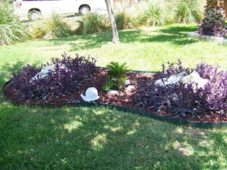 I finally braved the Texas heat to do a job I've been putting off. My flower bed in the front yard has become overgrown with Wandering Jew plants. I love the plants because they are very drought-resistant and the color is striking against the green grass. But they grow like mad too. Several times each year I have to go pull a bunch out. Sometimes I transplant them by sticking them in the ground elsewhere because they'll root themselves pretty much anywhere. Today I filled five trash bags full of plants to toss out.