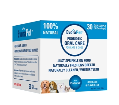 I am surprised, however, that the EvoraPet is actually making a difference. Buddy can now breathe on me without knocking me out. Impressive. It's also much cheaper than the dental chew sticks, by more than half the price. A 30 day supply from Oragenics is only $14.95 and a 60 day supply is only $24.95. Plus I get to offer you a special discount of $5.00 off if you use the code EPET811 at checkout (US only).