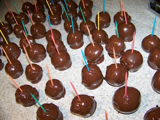 Edited to add: My 16 year old son says, "Mom, why didn't you just use the chocolate fondue fountain we got you for Mother's Day?" Uhhhhhh....Guess who is going to have to make more cake balls now?