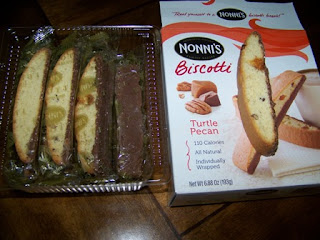 I had to wait until after my next meal to try the Turtle Pecan Biscotti and I was so sorry I waited. See that big spot on the Biscotti I set on the box on the right? That is a huge chunk of caramel. These are so good. No wait, these are absolutely, positively, amazingly, scrumptious. Did you know there are EIGHT flavors? I can't wait to try the others.