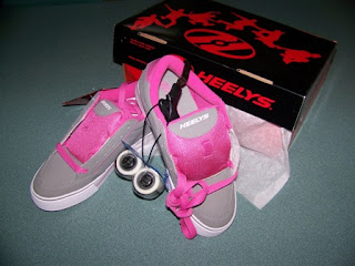My teenage boys were rather amused at the prospect of mom in Heelys. My new shoes arrived this weekend and my son popped the wheels in them for me. It was a quick and simple assembly. I laced them up and put them on. The shoes are actually very comfortable and the design is really cute.