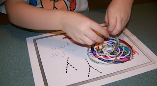 We talked about what words we thought up yesterday that begin with the letter Y and when one of them said yellow, I led us into an art activity. Today we used the lowercase y and painted with yellow paint.