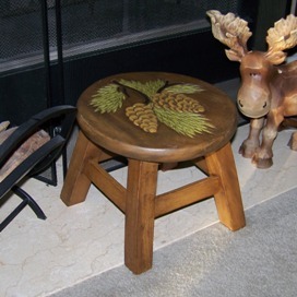 The Pine Cone Foot Stool is made of a beautiful acacia wood and the design is hand-carved into the top of the stool. The carved art is then painted to make it stand out even more. It fits the design in my family room easily. I can also see it in my kitchen, my game room, the guest room or my bedroom.