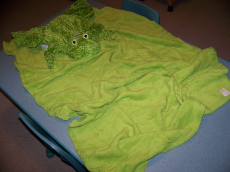 It was time to test him out on the kids. All eight of them wanted a turn to play with him, to use him as a pillow, and to wrap up in his blanket. They even decided the green blanket was a great lily pad for Flavio! There are dozens of different Zoobie Blanket Pets to pick from and I had a hard time choosing between the frog, the moose, the zebra, and the monkey.