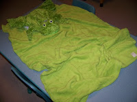 As soon as the kids arrived this morning, they spotted Flavio the Frog perched on my shelf. I had already taken a few "out of the box" photos of him because I knew they'd want to hold him as soon as they arrived. He is so cute you have to smile when you look at him. He is so soft and squishy that you cannot help but hug him. The best part is, while you're wrapping your arms around him, he's wrapped around you too. Flavio is a darling plush toy, a super soft pillow and a heavenly soft blanket.