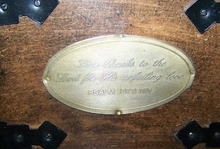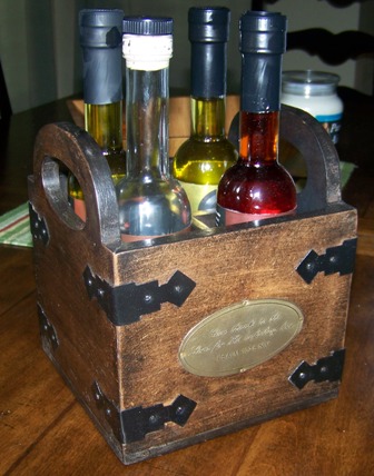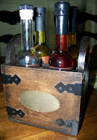 For now, I've decided it's perfect counter-top storage for my set of four new olive oils. They fit perfectly inside each of the four sections and looks amazing, doesn't it? Sort of like a tiny wine case! The Give Thanks Wooden Caddy measures 6 1/2" square, 5 5/8"H. Each caddy is handmade and is uniquely finished. The scripture plate on the front reads: Give thanks to the Lord for His unfailing love. Psalm 107:8 NIV