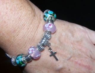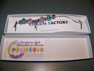I love to wear really unique items. I guess it's an attention thing. When I wear something, like jewelry, that has a very distinct look, people ask me about it. Since I'm just a tad shy (really I am) it gives us a starting point in a conversation. Charm Factory bracelets are like no other! Their European style beads are bold, bright, dainty, classic, unique, and beautiful - all at once. I chose the Cross Bracelet and could hardly wait for it to arrive. A few short days later, a sheepish postal worker delivered a damaged envelope to me....BOO USPS! Lucky for them, my bracelet was in perfect condition!