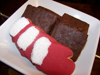 So I dug in to find a pack of Peppermint Snowflake Shortbread Cookies, big buttery-soft Snickerdoodle Cookies, mouth-watering Chocolate Chunk Brownies, and gorgeous hand-decorated Red Mitten Cookies. Sounds like a party in a box! So I got out my party plates and opened it all up.