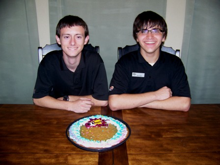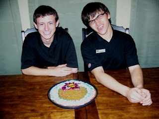 By the time we got all four of us together to celebrate Johnathan's and Ryan's 17th birthdays, it was 11:45p.m. Monday night. I wanted Happy Birthday Men written on it, but the bakery at the grocery store was closed for remodeling. It's the cookie that matters anyway!