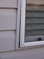 As I am standing there photo-journaling his amazing handyman skills, I noticed a perfect spot to use the third product in my "contented wife" box...the No Warp Window and Door Sealant. How exciting to get three things crossed off the list in ONE day!