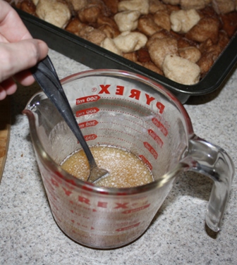 measuring cup. I poured the remainder of the cinnamon sugar mix from the bag into the melted butter and stirred well.