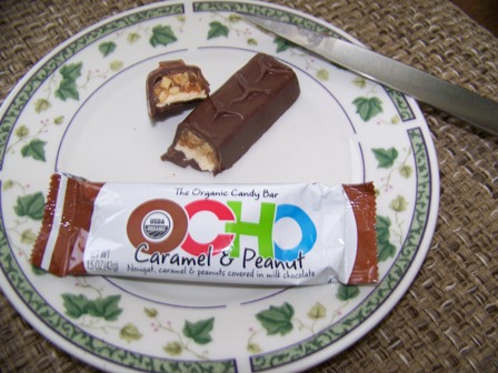 OCHO Candy Bars are made from organic ingredients. They are certified orangic by CCOF and reading the ingredients on the packaging, everything in them is organic. Candy is one of the things everyone eats at some time or another. Convenience stores have entire aisles of candy bars, filled with preservatives, additives, and artificial flavors. You won't find any of those in OCHO Candy Bars!