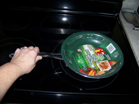 The first meal in our new pan was chicken tacos. Combine one can of shredded canned chicken, one can of cheddar cheese soup, one can of sliced olives, and a tablespoon of salsa, in a frying pan, to simmer ten minutes. Serve with warm flour tortillas. The food was perfect and the clean up was simple. I don't know why we've waited to get OrGREENic in our kitchen! I love this cookware!