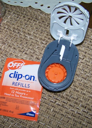 Off has a wonderful new Clip-On that works like a little fan to help keep those pesky mosquitoes away! Each Clip-On refill last for a full 12 hours and the refill is just a little pad that goes inside the Clip-On. It's so simple and it works much better for me than the sticky, stinky sprays.