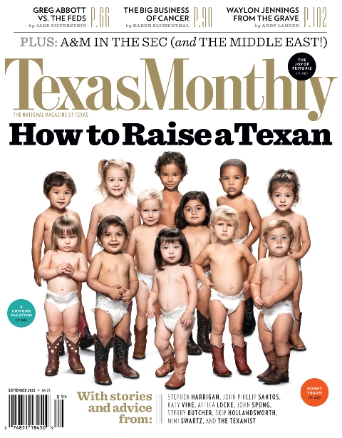 PRESS RELEASE - During its almost 40-year history, Texas Monthly has provided guidance to its readers on how to experience the best that Texas has to offer. Not until the September 2012 issue has the magazine tackled the subject of how to raise a Texan—from birth until their departure from the nest. In ten remarkable stories that march chronologically through the stages of life, a diverse group of writers weighs in on the challenges and joys of Lone Star parenthood. The on-sale date of the issue is August 23.