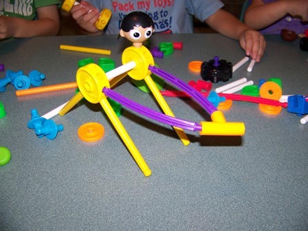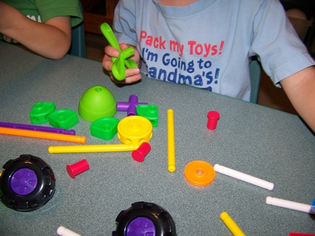 My three year old found the propeller and immediately wanted to build a helicopter. His design was quite original and he changed it midstream and created a "walking robot that sprays water." He even added a face to his robot. I love his imagination!