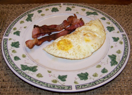 Breakfast - Two eggs over medium, two slices of bacon. Great start to my day!