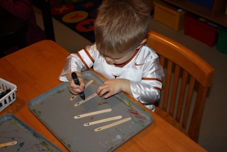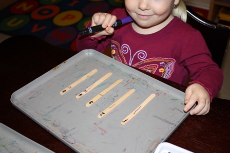 Allow them plenty of time to use the preschool counting sticks throughout the room. Interacting with the counting sticks will generalize over into other areas of play, which helps to solidify the concepts in the child's mind. When it is time to move on to another activity, provide each child a baggie to collect their five sticks together to take home to show their parents what they made and how they use them.1/8/13