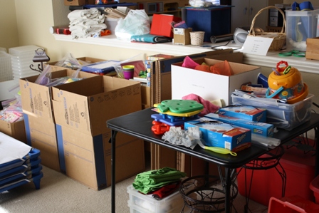 For a few weeks now, I've been working on organizing my daycare stuff. I closed one of the daycare rooms and am bagging up toys for an indoor sale, by appointment only. At least, that's what I keep telling everyone. It seems to me though that I just keep moving stuff around the little room, from basket to bag to box, from one side of the room to the other.
