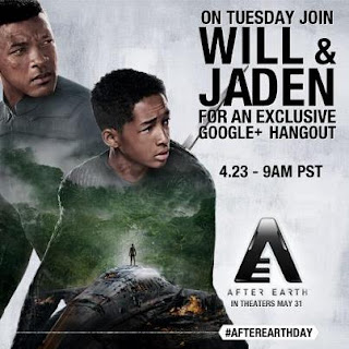 The Google+ Hangout will take place tomorrow, April 23, at 12 noon Eastern / 9 a.m. Pacific. Moviegoers can tune in to the live Google+ Hangout at YouTube.com/AfterEarth, as well as Google.com/+AfterEarth where fans are invited to submit their questions for a chance to have them answered by the panelists. Visit the Facebook page too!