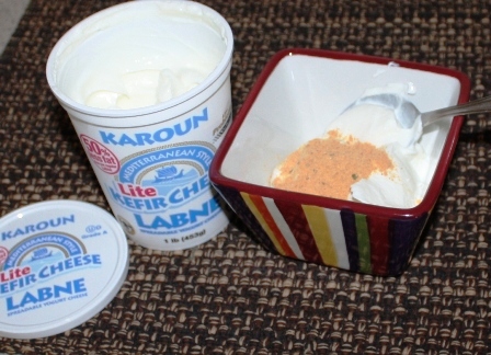 Mix Karoun Dairies Lite-Kefir Cheese (Labne) with olive oil.