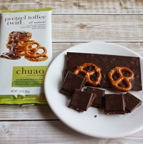 The Chuao Pretzel Toffee Twirl Bar has crunchy mini pretzels and buttery toffee dancing together in dark chocolate. Each bar is handcrafted with ethically sourced cacao, all natural, and gluten free ingredients. This might be my favorite flavor.