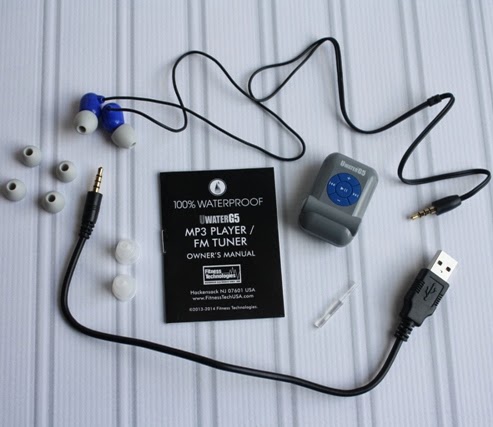 This summer, you won't have to leave your favorite tunes at home when you hit the pool and the beach. The UWaterG5 from Fitness Technologies is a 100% waterproof MP3 Player and FM Radio! Take it swimming, take it surfing, take it waterskiing, and take it kayaking. It's not just waterproof, it's also sweatproof and shockproof, plus it's snowproof so you can take it snowskiing this winter. It's perfect for all your activities, from your daily workouts to your annual scuba dive.UWaterG5 MP3 Player and FM Tuner comes with 100% waterproof stereo earphones, plus four sets of silicon ear-tips in small, medium, large and triple-action designs. It also comes with a USB cable and a plastic activation pointer. This amazing little gadget will work up to 10 feet under water. Pick the color combination that you love most like blue/grey or pink/grey. Its back clip holds securely to your top, sweatband, or cap during even your most demanding activities. I must admit, I was a bit perplexed about the USB cord because I couldn't find where to plug it in to charge the UWaterG5, but when I realized it was the same plug-in spot as the earphones, I thought it was quite clever because it eliminates the need for covering a separate spot on the unit for water activities.