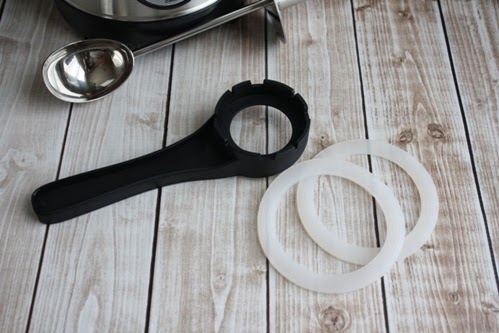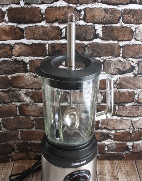 The Dynablend comes with a handy stainless steel scoop spoon that features a metal plate that fits perfectly over the hole in the top of the lid, if I choose to use it instead of the tight-fitting hole cover, which is also included. It comes in handy when I'm adding ingredients during blending, like when I'm mixing salsas.