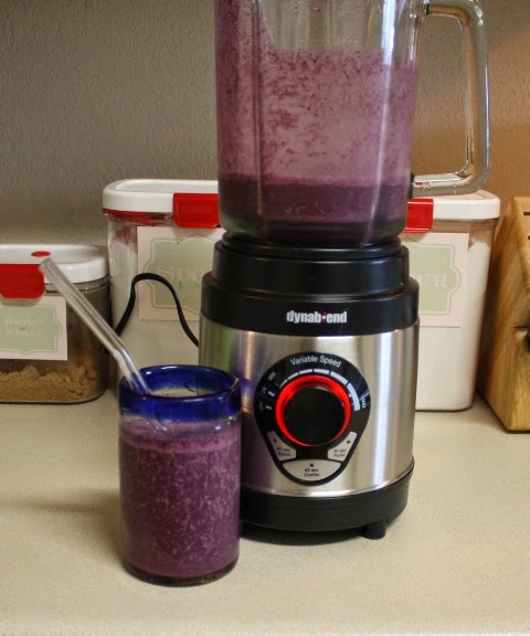 Then just put the lid on and turn on the Dynablend. I usually blend for about 2 minutes, then pour my smoothie into a glass. This recipe makes one large smoothie or you can share half with someone you love. You can always make more too!