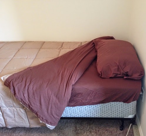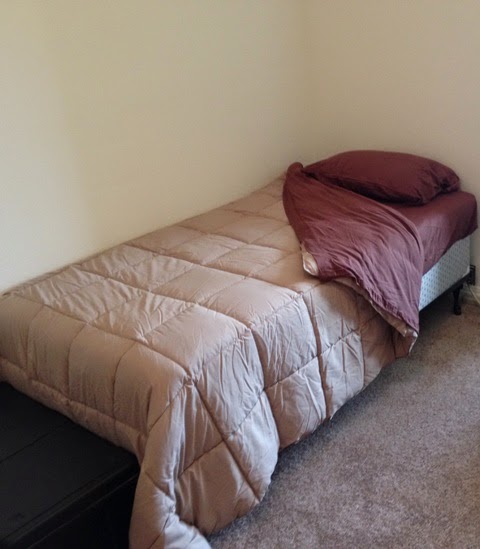 The Twin XL Comforter set includes a big fluffy comforter in many different color choices and also includes a pillow sham if your teens likes an extra pillow on their bed. I love that the comforter has block stitching because it keeps all the filling in place, even through the washer and dryer. We opted for brown jersey sheets and a tan comforter set.