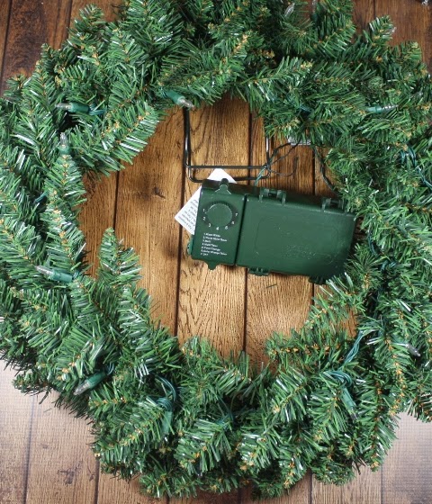 Who's up for a December QVC Challenge? This month I was challenged to decorate a holiday wreath. A wreath is one of my favorite Christmas decorations. It's said to symbolize strength and we all need that to get through the holiday rush!QVC sent me this beautiful green 24-inch wreath designed by Ellen DeGeneres. The wreath features 180 PVC evergreen tips and 40 soft-color LED lights. The lights have clear, multicolor, and gentle morph functions so you can choose how to light up your wreath.