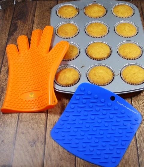 I am so impressed with these HighFive Naturals products! Just yesterday, I used the cooking gloves to pull my cupcakes out of the oven, then set my hot muffin pan to cool on the potholders. I used the suction lids to cover my batter between baking cycles. They are so easy to use and kept me (and my counters) safe from burns. They're also extremely easy to clean.
