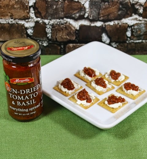 I used the Sun-Dried Tomato and Basil to create appetizers by spreading some wheat crackers with a bit of whipped cream cheese, then topped each one with a bit of Everything Spread. It's such a quick and easy way to make a scrumptious snack in minutes. No more mincing, grating, or measuring individual spices!