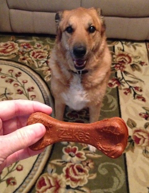 Zuke's Z-Bones, Genuine Jerky, and Mini Naturals, and Buddy was so excited to try them for me. Zuke's Z-Bones are natural edible dental chews. They help to freshen his dog breath naturally, without wheat gluten, cornstarch, or synthetic chlorophyll. They also scrape and polish his teeth while he enjoys a delicious treat.