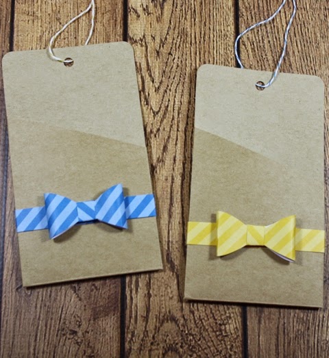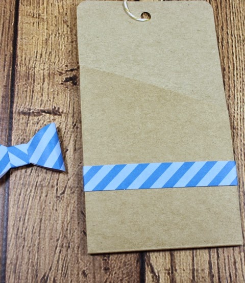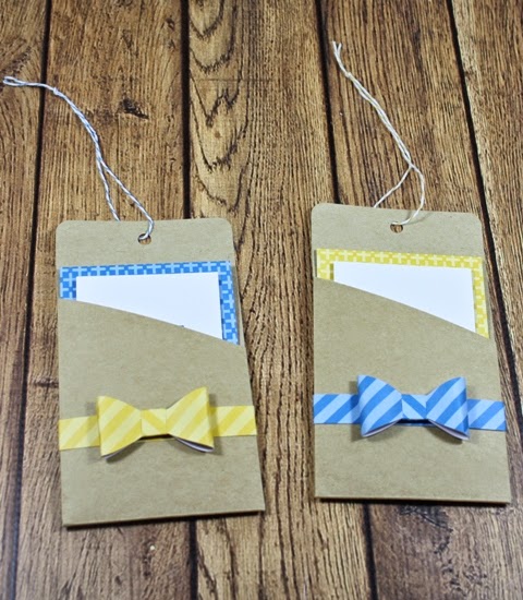 I first started my project by laying out all the pieces and punching out the bow papers. The kraft pockets were so easy to create - just fold and peel the adhesive strip off to secure them. Then I strung the baker's twine through the pre-punched holes at the top of each pocket.