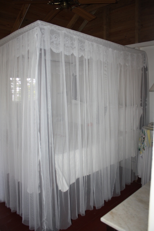 The bed features a canopy of mosquito netting, but in reality I only got about five mosquito bites the entire week I was touring around outside on Nevis and I found no mosquitoes in my cottage. I only saw a couple lazy flies sunning themselves on the balcony and a few ants enjoying a mango outside on the ground.