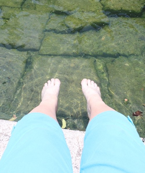 Nearby, an employee stands ready with moist washcloths so visitors can wipe their feet before putting them in springs. The water is really hot and I was told it was between 104-108 degrees in different spots. About ten minutes of feet immersion was all I could handle!