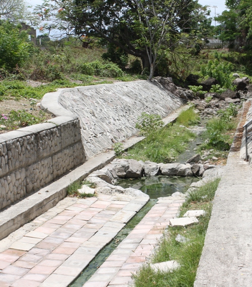 The channel is a beautiful area where architecture and nature come together. I noticed the air around the hot springs was much warmer, although there was no sulphur smell at all. I walked down the concrete steps into the channel and removed my shoes.