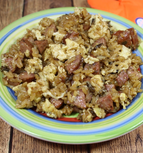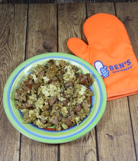 I used the Uncle Ben's Long Grain and Wild Ready Rice to create a Sweet and Spicy Fried Rice meal. The finished dish is absolutely incredible! The jalapeno in the sausage lends a spicy taste, with the sweetness of the teriyaki sauce balancing the savory flavor out.