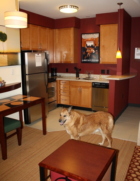Residence Inn is even pet-friendly! Buddy got to take his first-ever road trip and was immediately at home there. When we checked in, the front desk staff wanted to pet him and even gave him some dog treats that they keep behind the desk. There is a one-time pet cleaning fee, but it costs less than three nights in the kennel back home, and I'd rather have Buddy with me.