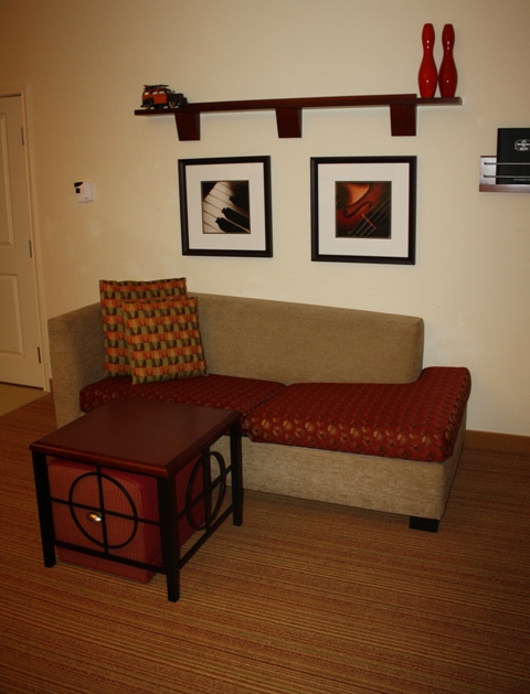 The furniture is comfortable and high-quality. I love all the attention to detail in the suite. The suite is around 500sf in size, so it's plenty of room even with an 85-pound dog. I've stayed in a few ritzy five-star hotels before, but this Residence Inn suite is nicer and more comfortable than any of them. I would easily give it five stars.