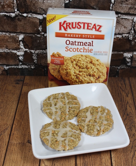I made about two dozen cookies from the Krusteaz mix and put a coffee-glaze drizzle on half of them to make the Jolty Scotchies recipe from the idea on the box. They are SO delicious! Krusteaz also offers other stir-in ideas on the box so I can make them different every time.